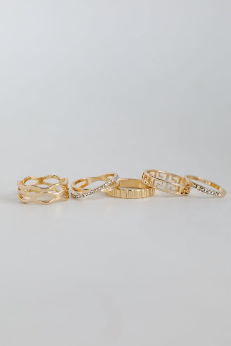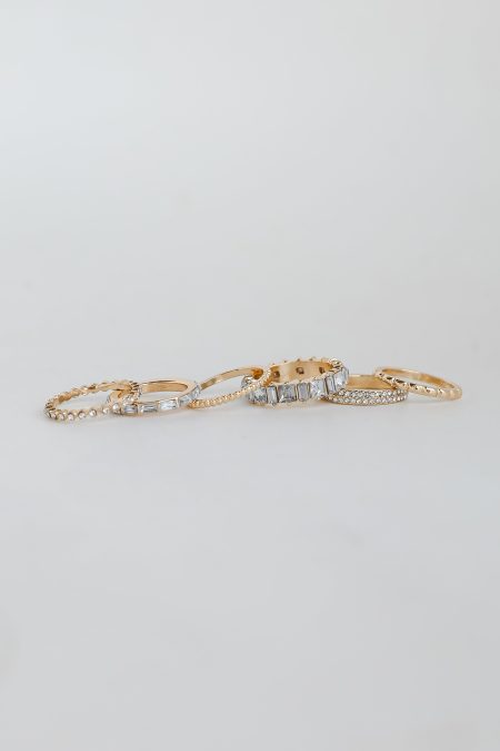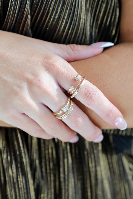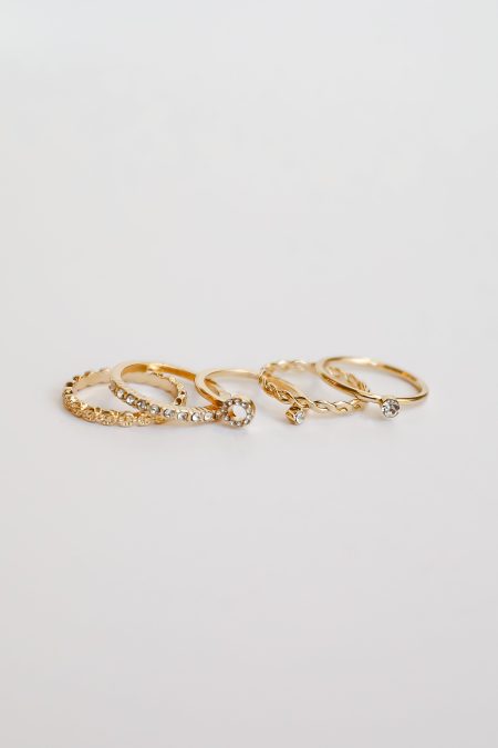 Exceptional ensembles just wouldn’t be complete without finishing touches like the Jackie Gold Ring Set! This set of five dainty gold rings feature varying shapes and textures. Wear the Jackie Rings separately or stack them all together, either way you’ll love them! Gold Plated Set of 5Ring Sizes Vary 6.5 – 7