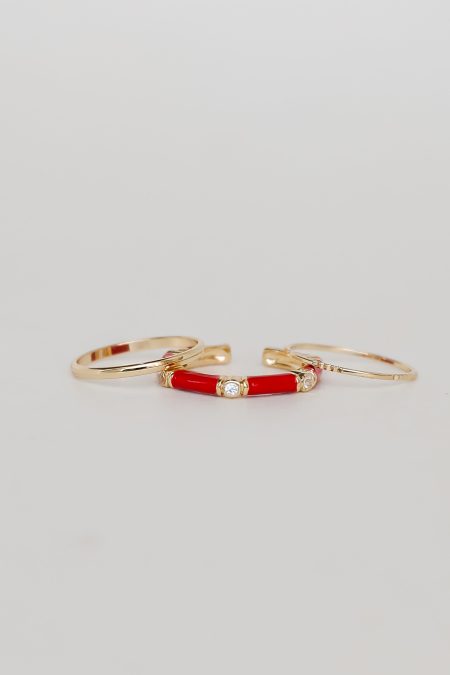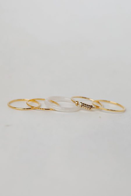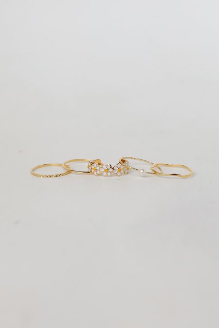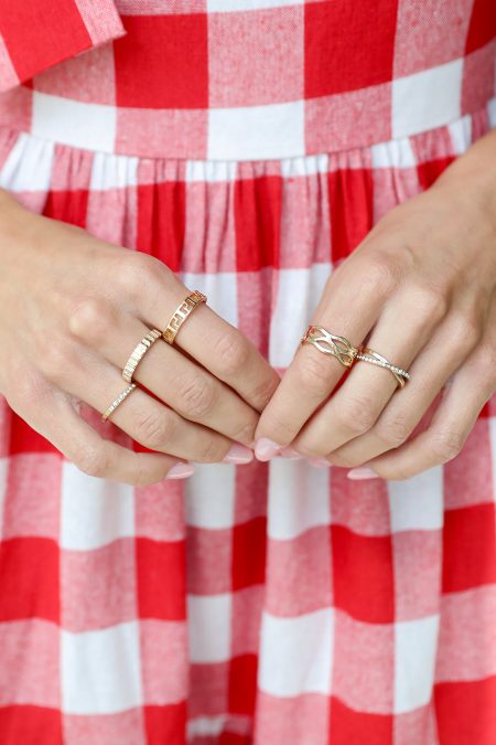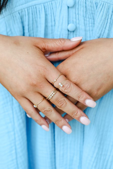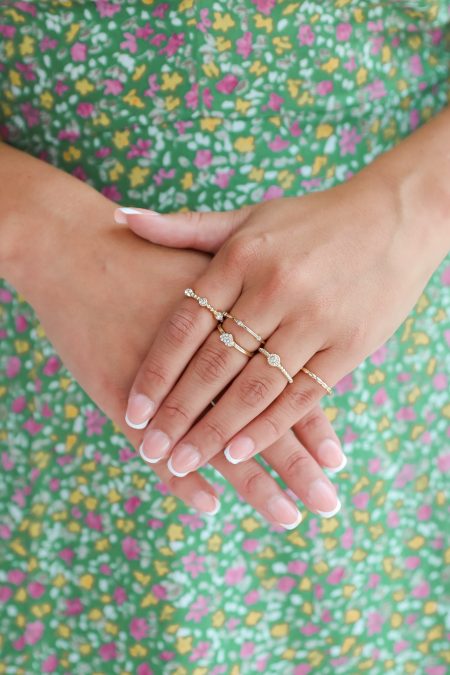 Exceptional ensembles just wouldn’t be complete without finishing touches like the Jackie Gold Ring Set! This set of five dainty gold rings feature varying shapes and textures. Wear the Jackie Rings separately or stack them all together, either way you’ll love them! Gold Plated Set of 5Ring Sizes Vary 6.5 – 7