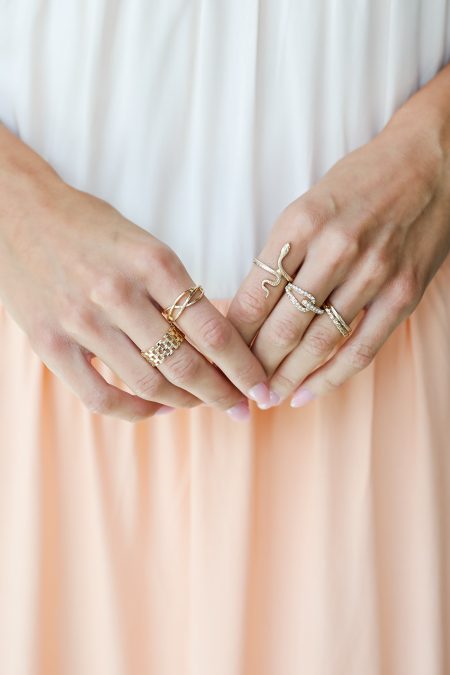 The Margot Gold Snake Ring Set is the most special way to finish any of your most sensational looks! This set of six dainty gold rings feature varying shapes and textures including rhinestones and a snake design. Wear the Margot Rings separately or stack them all together, either way you’ll…