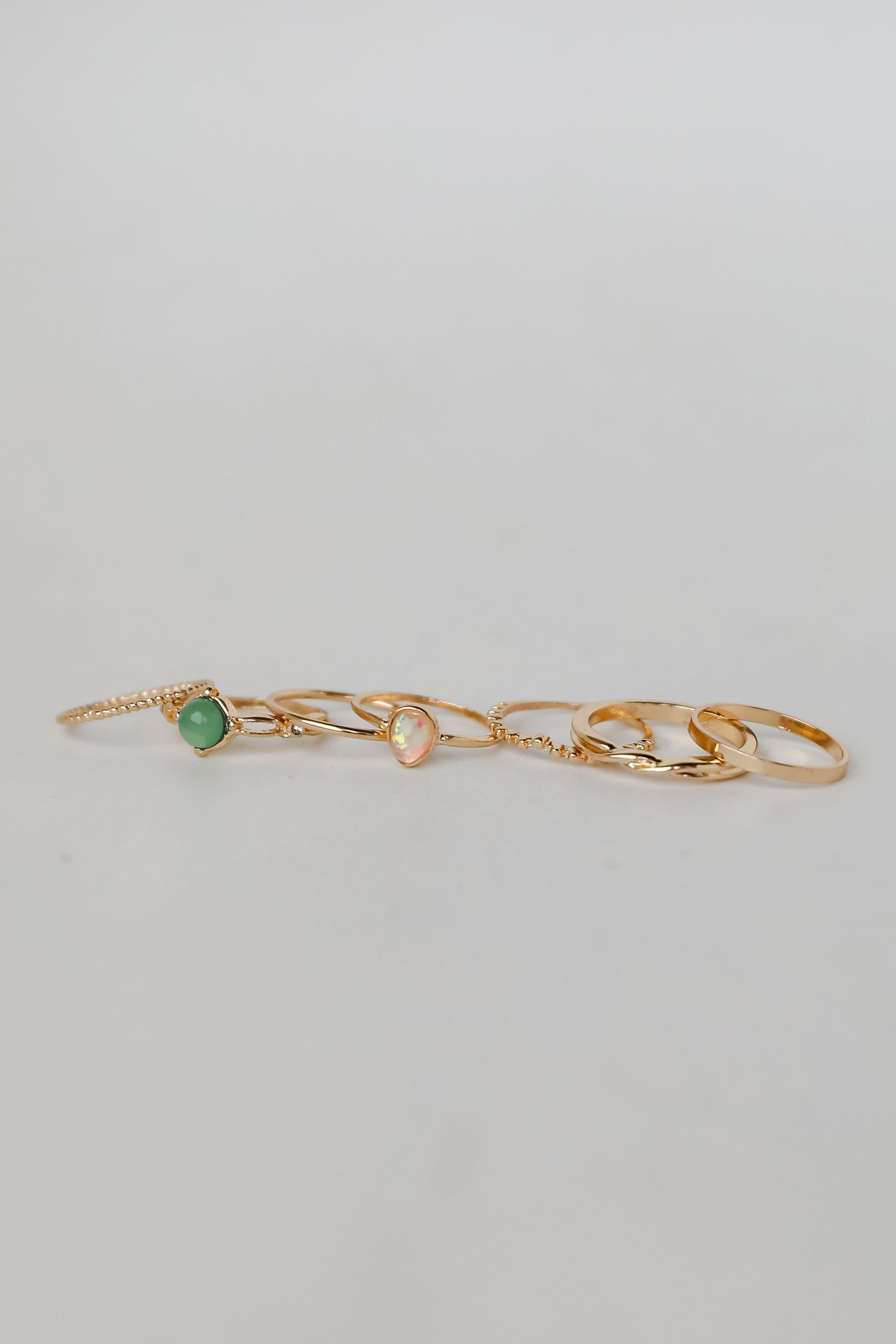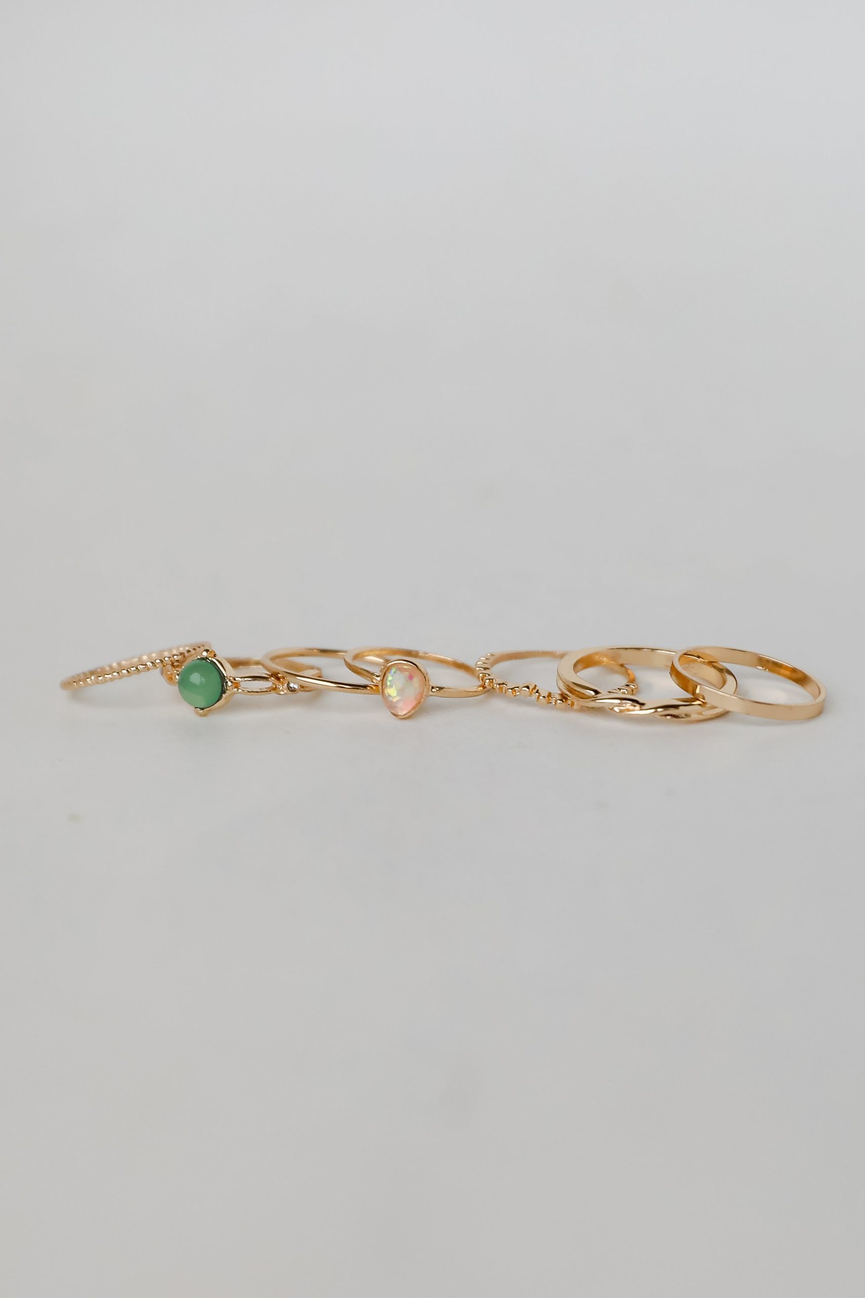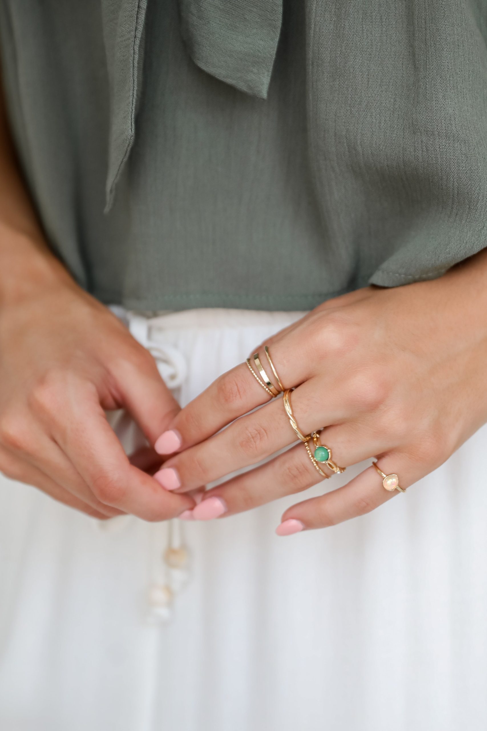 Your big day deserves something a little extra stunning, like the Laura Gold Ring Set! This set of seven dainty gold rings feature varying shapes and textures. Wear the Stella Rings separately or stack them all together, either way you’ll love them! Gold Plated Gemstones Set of 7Ring Sizes Vary 6 – 7