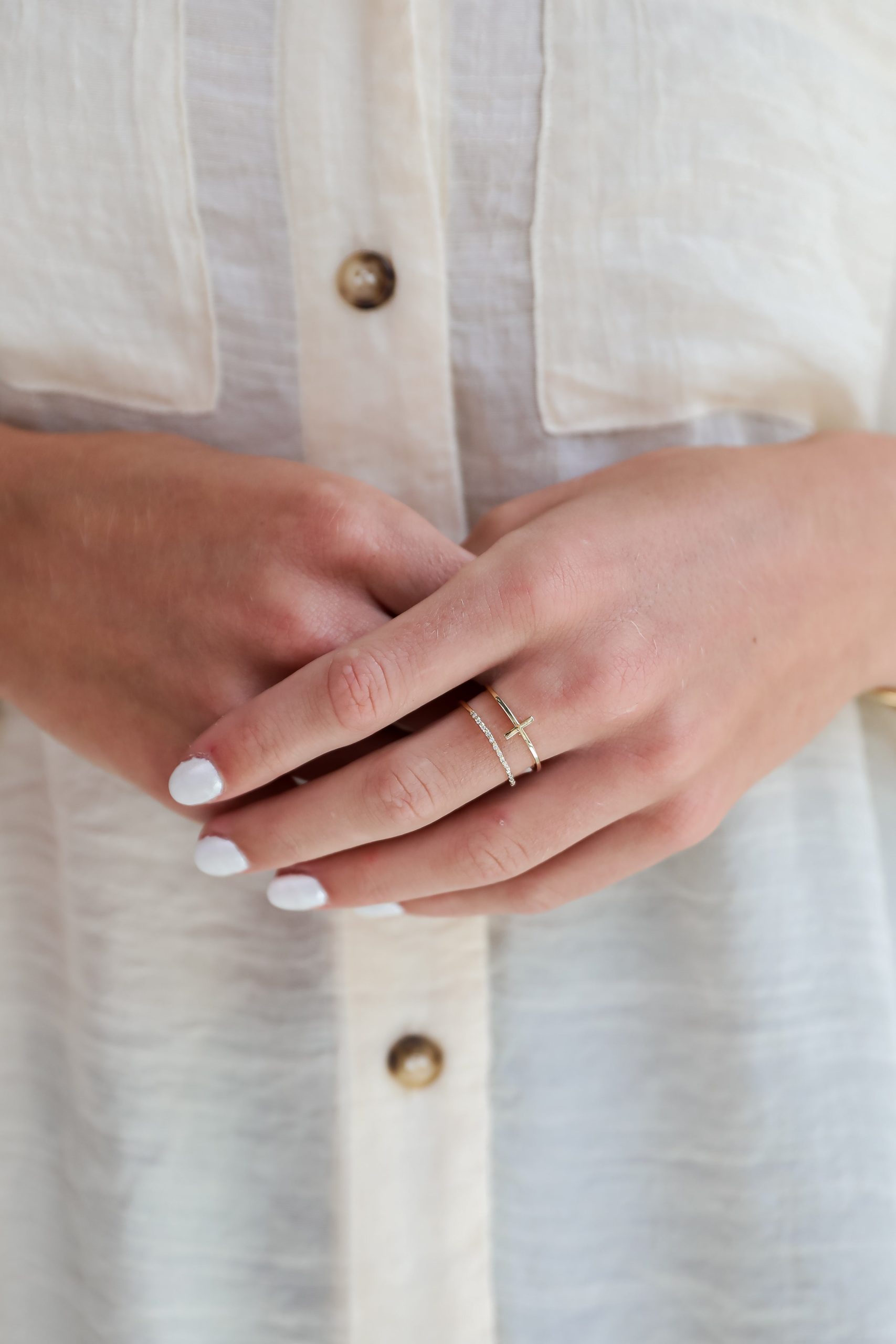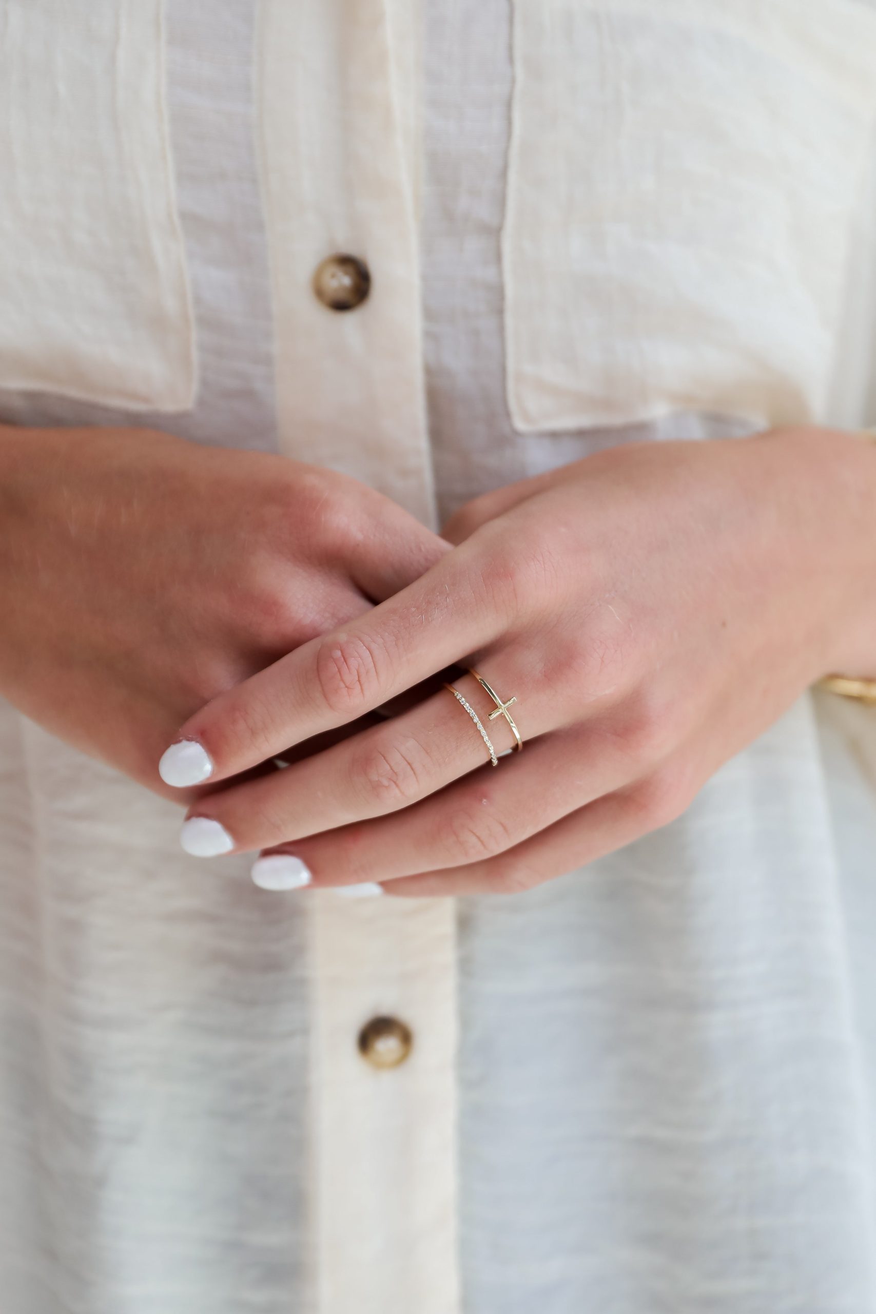 Elevating any look just got super simple thanks to the Melanie Gold Rhinestone Cross Double Ring! This dainty gold ring features a double open ring design with rhinestones + a cross. Wear the Melanie Ring on its own or stack it with other gold rings, either way you’re sure to shine! Gold Plated Double Ring Design Rhinestones CrossOne Size | 7